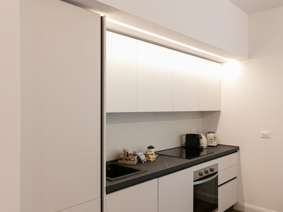 Punto di forza dell'alloggio, come di tutti gli appartamenti di MT Apartments, è la presenza di un impianto fotovoltaico con accumulo che lo rende ecosostenibile da un punto di vista energetico.